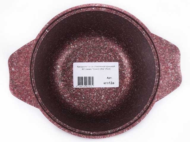 Кастрюля 1 л с антипригарным покрытием со стеклянной крышкой, Kukmara (Granit Ultra red), кга12а