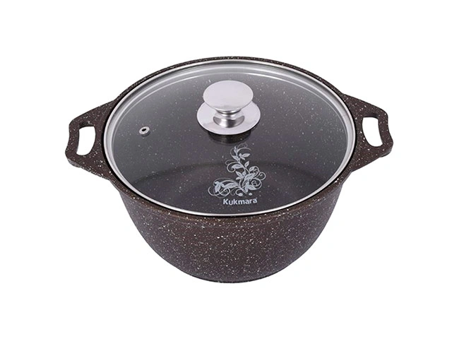 Кастрюля 3 л с антипригарным покрытием со стеклянной крышкой, Kukmara (Кофейный мрамор), кмк32а