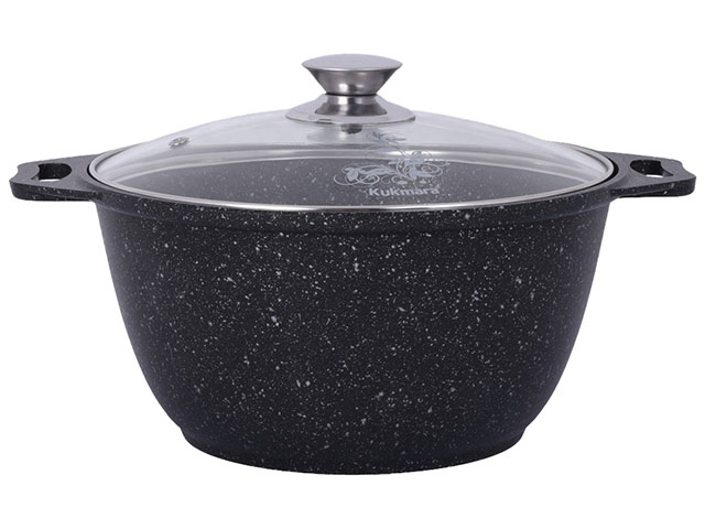 Кастрюля 3 л с антипригарным покрытием со стеклянной крышкой, Kukmara (Темный мрамор), кмт32а