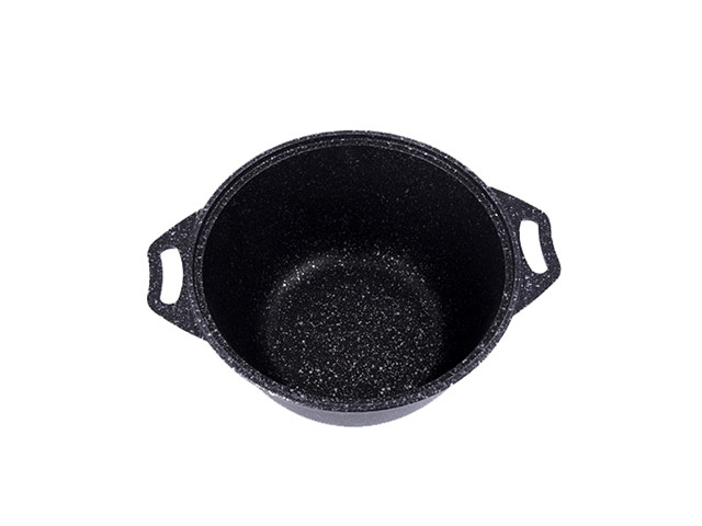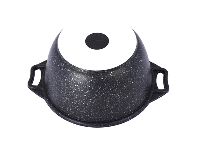 Кастрюля из литого алюминия мало напоминает всем знакомую легкую и непрочную алюминиевую посуду. Металл с добавлением кремния - долговечный современный материал, не подверженный деформации. Метод нанесения "мраморного" покрытия также гарантирует его исключительную стойкость. На процесс и качество приготовленных блюд не влияют даже повреждения на антипригарном напылении.