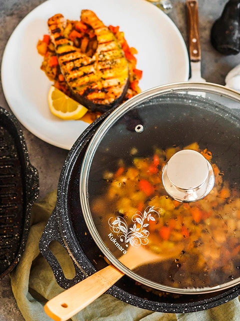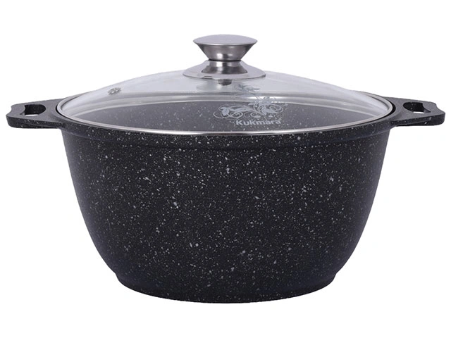 Это одна из самых толстостенных кастрюль в линейке продукции популярной отечественной марки. Литой корпус оптимальным образом распределяет температуру, сохраняя в продуктах все полезные вещества. Антипригарное покрытие последнего поколения с включениями из природных минералов защищает поверхность кастрюли от повреждений. Посуда рассчитана на активную эксплуатацию, у наших покупателей кастрюли Kukmara становятся самыми любимыми и наиболее часто используемыми.
