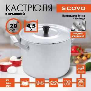 Кастрюля из пищевого алюминия быстро и равномерно нагревается, перепады температуры не представляют для нее опасности. Посуда обработана методом матовой полировки, такая поверхность лучше переносит контакт с металлическими кухонными аксессуарами и мочалками, абразивными моющими средствами — мелкие царапины на ней незаметны. Кастрюлю можно мыть в посудомоечной машине. Российская марка SCOVO ведет свою историю с 1947 года. В разные годы она одной из первых в стране внедряла самые передовые технологии. Продукция уральского предприятия отличается стабильно высоким качеством.