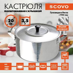 Кастрюля полированная с крышкой, SCOVO, ПП-025, 3.5 л