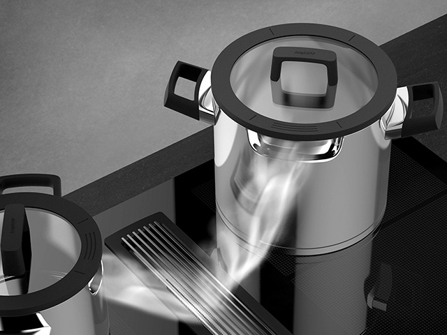 Хотя эти кастрюли подходят для всех типов плит, но в первую очередь они идеальны для варочных панелей со встроенной в их поверхность вытяжкой, такие варочные становятся сегодня всё более и более популярными. Благодаря продуманным запатентованным технологиям пар из кастрюли направляется прямиком к вытяжному каналу.