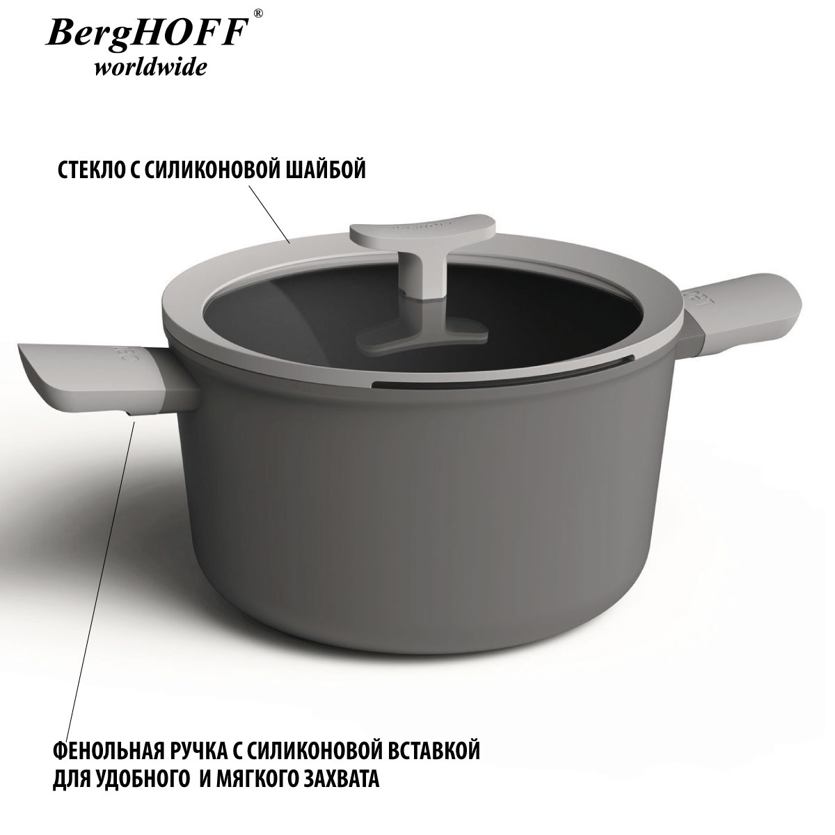 Кастрюля со стеклянной крышкой BergHOFF Leo, 5.5 л