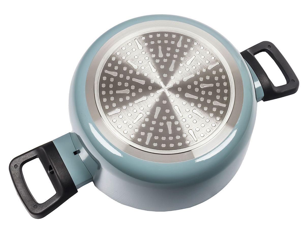 Украсьте свою кухню приятным цветом кастрюли при приготовлении ужина! Кастрюля с алюминиевым покрытием проста в обращении благодаря своему легкому весу. Кастрюля оснащена высококачественным антипригарным покрытием для легкого извлечения продуктов и очистки. Стеклянная крышка с ободом из нержавеющей стали с вентиляционным отверстием позволяет следить за едой во время приготовления, сохраняет топло и вкус блюда. Индукционное основание подходит для всех варочных панелей. Ручка из фенольной смолы сохраняет прохладу.