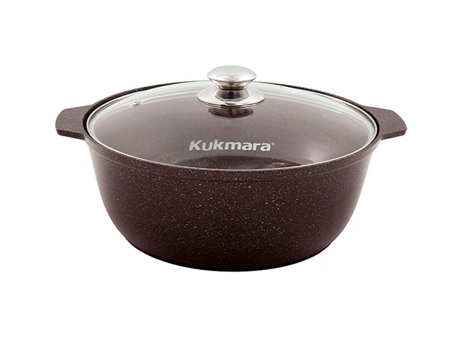 Кастрюля-жаровня 5 л с антипригарным покрытием со стеклянной крышкой, Kukmara (Кофейный мрамор), жмк528а