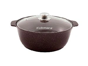 Кастрюля-жаровня Kukmara с антипригарным покрытием имеет ровное, окрашенное дно, которое не царапает нежную поверхность стеклокерамической плиты.