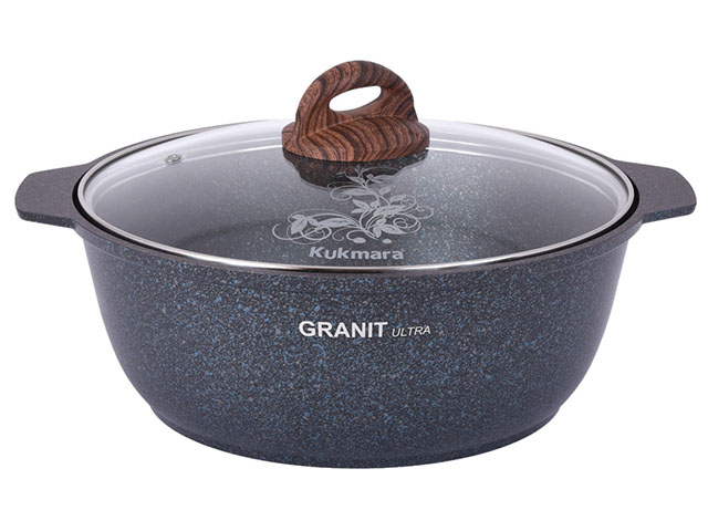 Кастрюля-жаровня 4 л с антипригарным покрытием со стеклянной крышкой, Kukmara (Granit Ultra Blue), жгг41а