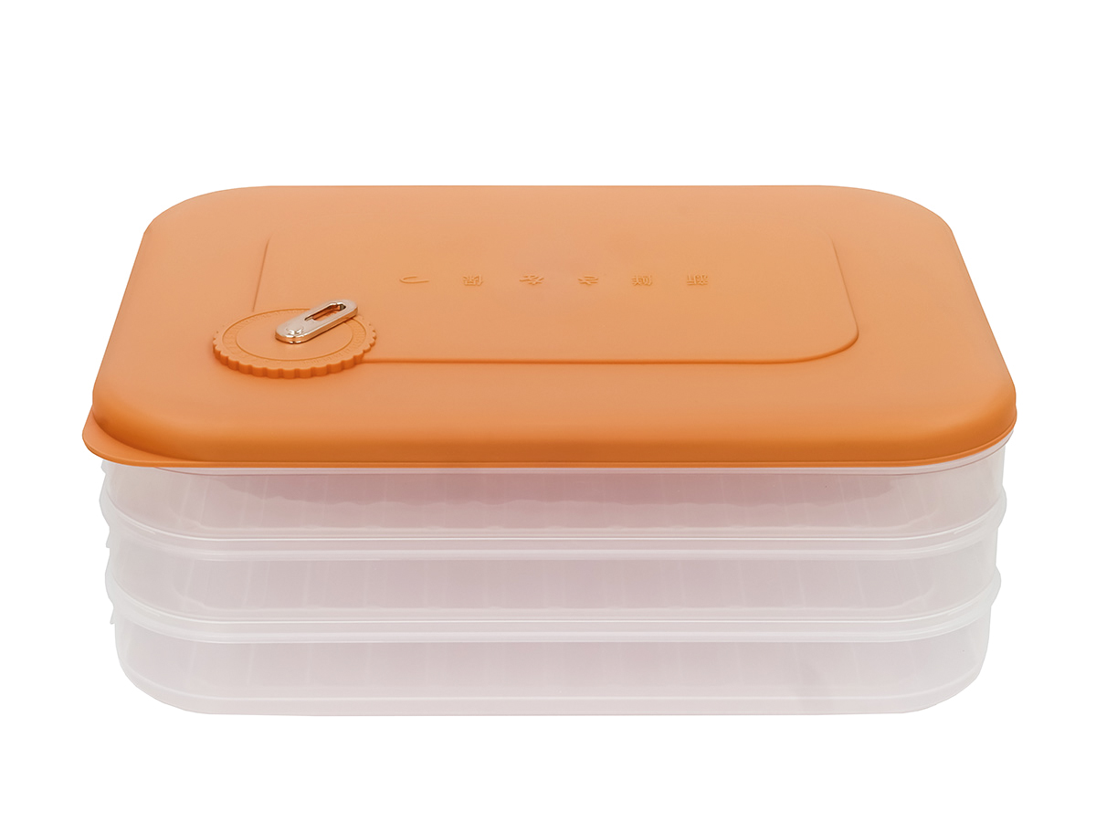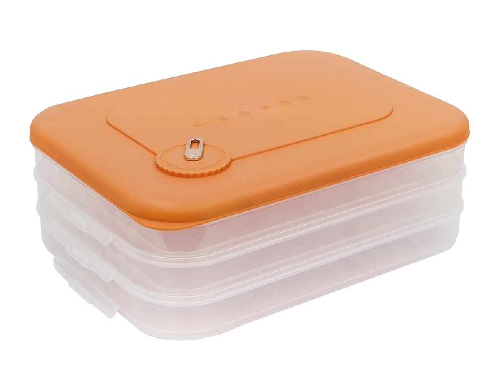 Контейнер с крышкой для хранения и заморозки продуктов на 3 секции, 30х23х11 см, оранжевый