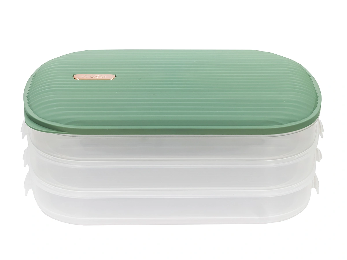 Контейнер с крышкой для хранения и заморозки продуктов на 3 секции, 32х22х13 см, зеленый