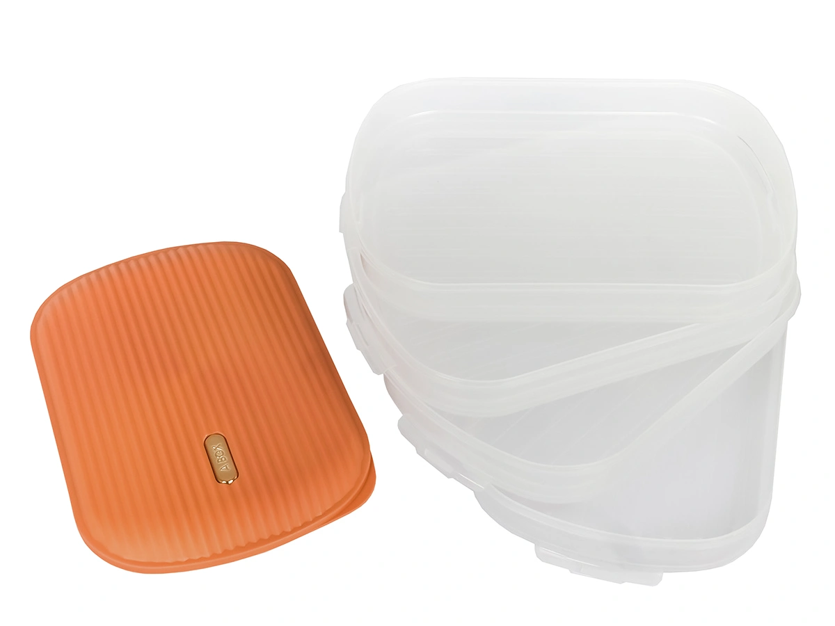 Контейнер с крышкой для хранения и заморозки продуктов на 4 секции, 32х22х16 см, оранжевый