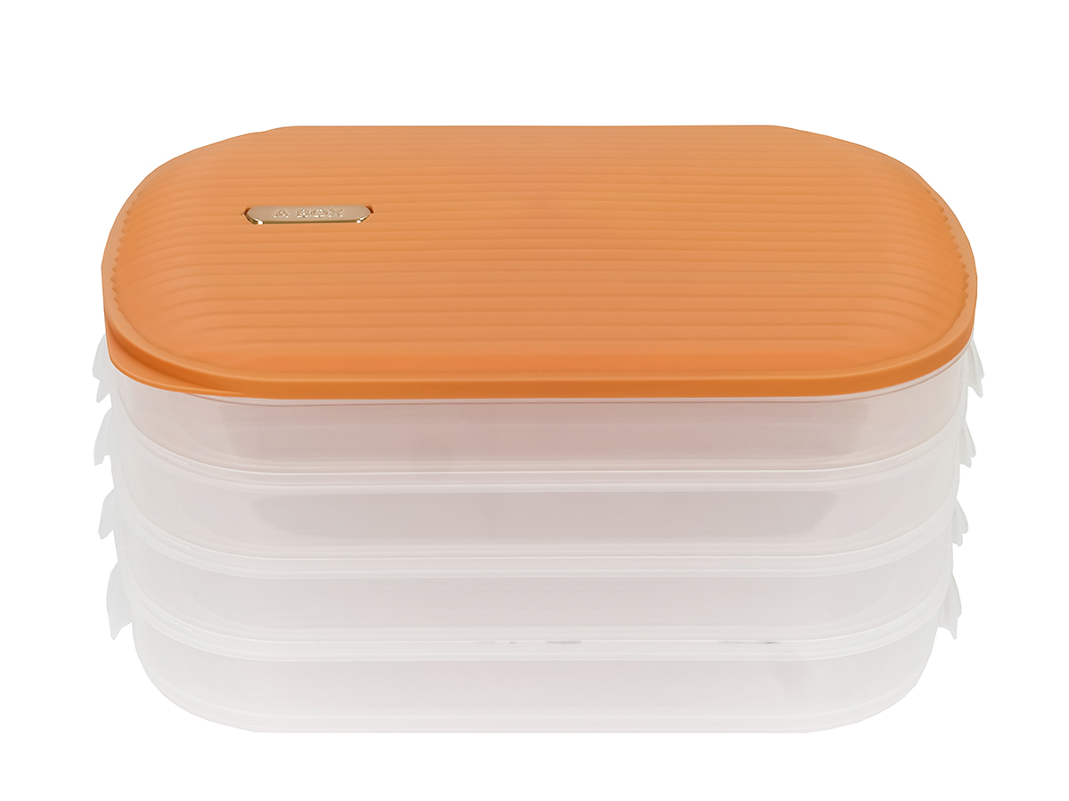 Контейнер с крышкой для хранения и заморозки продуктов на 4 секции, 32х22х16 см, оранжевый