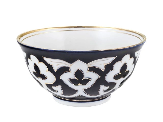 Главный элемент орнамента "пахты" – цветок хлопка. Этот фарфор ручной работы узбекских мастеров выглядит очень нарядно и подходит как для праздничного стола, так и для повседневного использования.