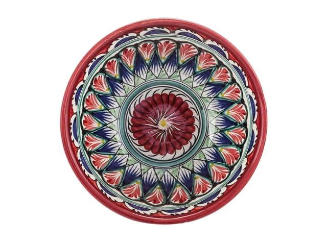 Риштанскую посуду отличают яркие цвета и богатые орнаменты. Каждое изделие уникально и неповторимо, в росписи нет ни одного повторяющегося рисунка. Узор всегда очень мелкий и тонкий, орнамент состоит из огромного числа элементов. Кстати, если посуда “риштан” выглядит идеально, без единого изъяна – знайте, это подделка!
