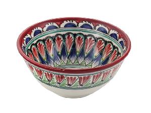 Риштанскую посуду отличают яркие цвета и богатые орнаменты. Каждое изделие уникально и неповторимо, в росписи нет ни одного повторяющегося рисунка. Узор всегда очень мелкий и тонкий, орнамент состоит из огромного числа элементов. Кстати, если посуда “риштан” выглядит идеально, без единого изъяна – знайте, это подделка!