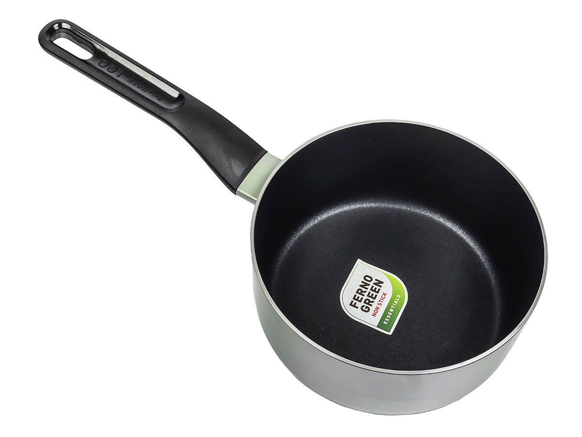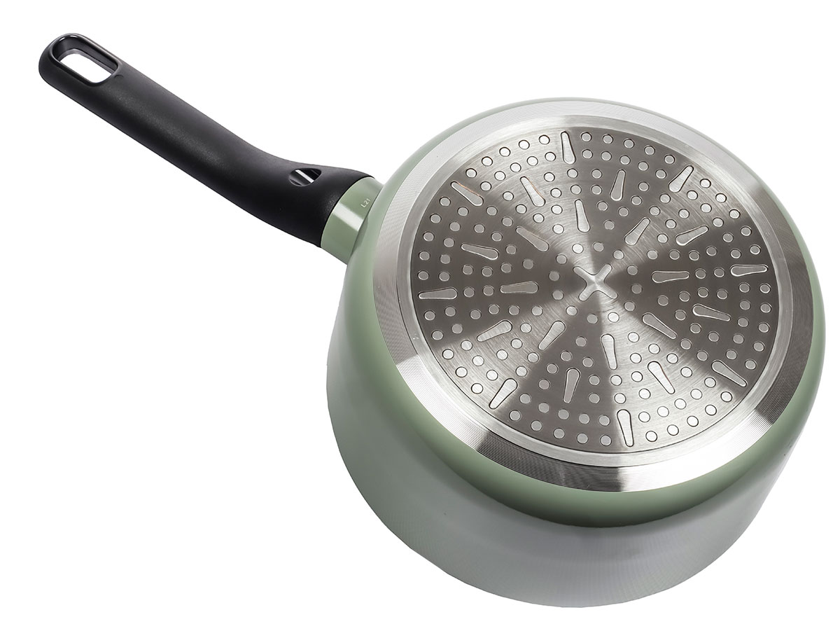 Ковш сделан из катаного алюминия и предназначен для всех видов кухонных плит, включая индукционные. Ненагревающаяся ручка с безопасным и удобным захватом. В комплекте крышка из термостойкого стекла. Индукционное дно не деформируется и оптимально распределяет тепло: блюда готовятся равномерно и быстро. На крышке имеется сливное отверстие. Многослойное антипригарное покрытие позволяет готовить с минимальным количеством масла и не содержит вредных ингредиентов — посуду можно смело рекомендовать для приготовления детских блюд.