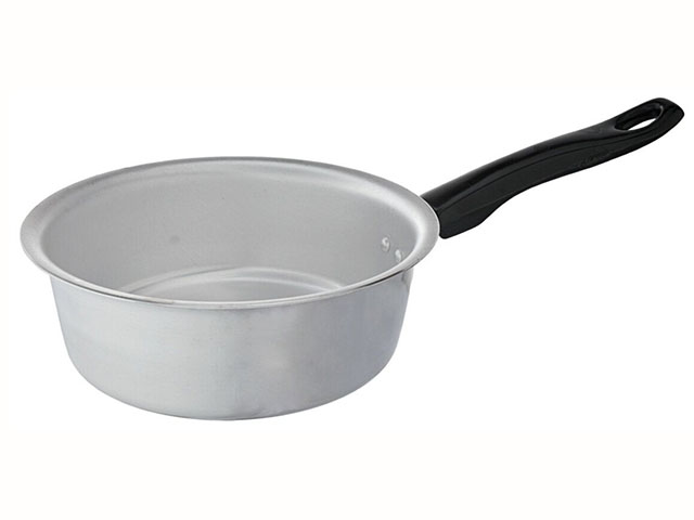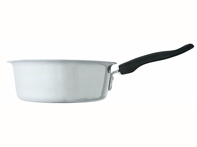 Посуда из пищевого алюминия быстро и равномерно нагревается, для нее не представляют опасности перепады температуры. Корпус оснащен ненагревающимися пластиковыми ручками. Посуда обработана методом полировки, такая поверхность лучше переносит контакт с металлическими кухонными аксессуарами и мочалками, абразивными моющими средствами — мелкие царапины на ней незаметны. Ковш можно мыть в посудомоечной машине.