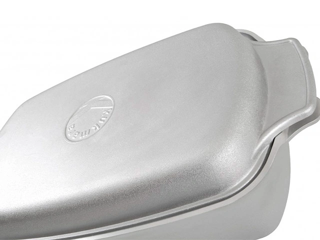 Гусятница из литого алюминия, продукция российского производителя посуды Kukmara. Объем 4,5 литра, плоское дно, длина 39 см, высота 14,5 см, толщина стенок 6 мм, вес 2,55 кг. В комплекте алюминиевая крышка. Артикул товара г45. Купить в Москве гусятницу Kukmara г45, 4,5 л, у нас вы можете с гарантией от изготовителя.