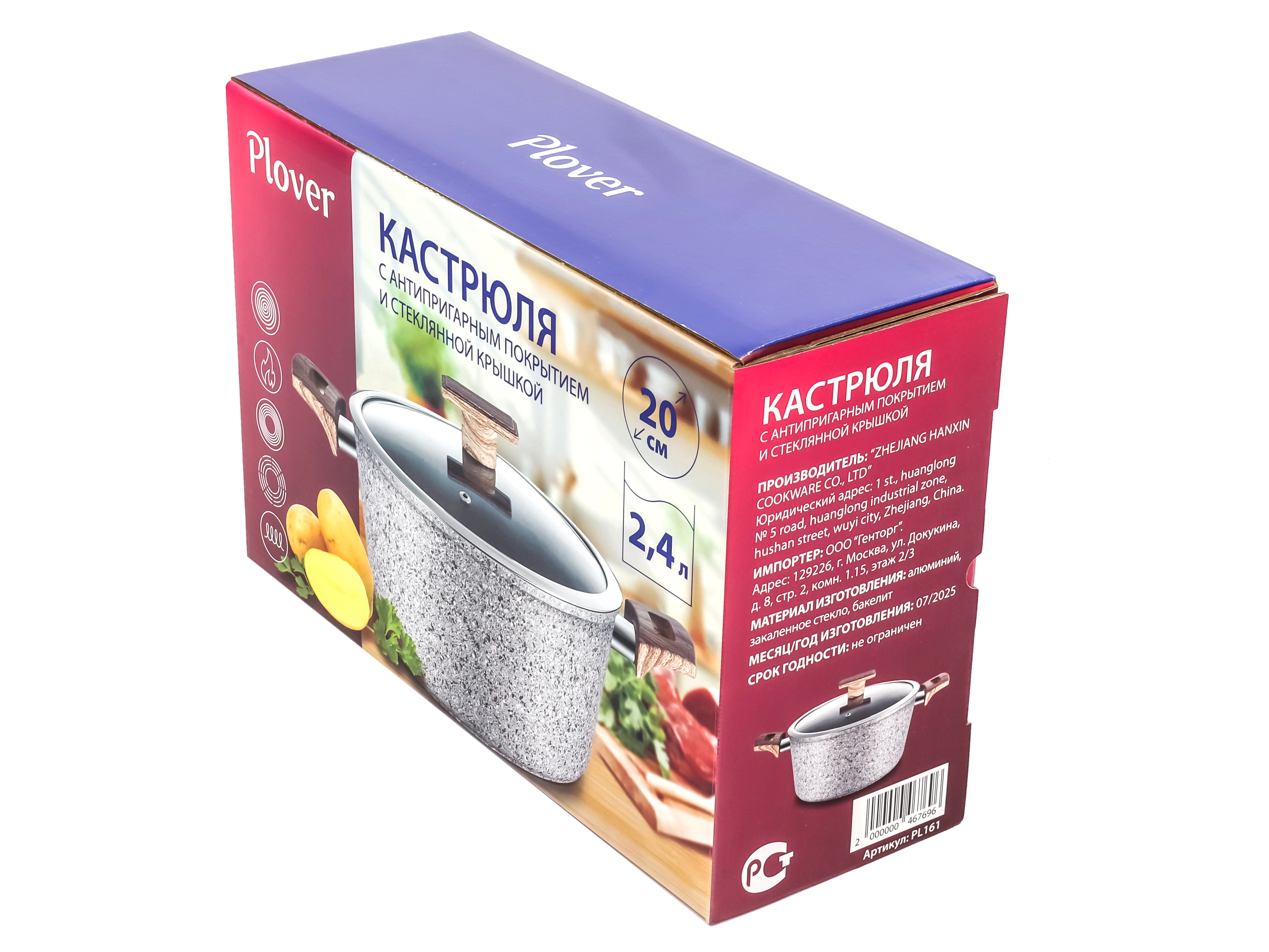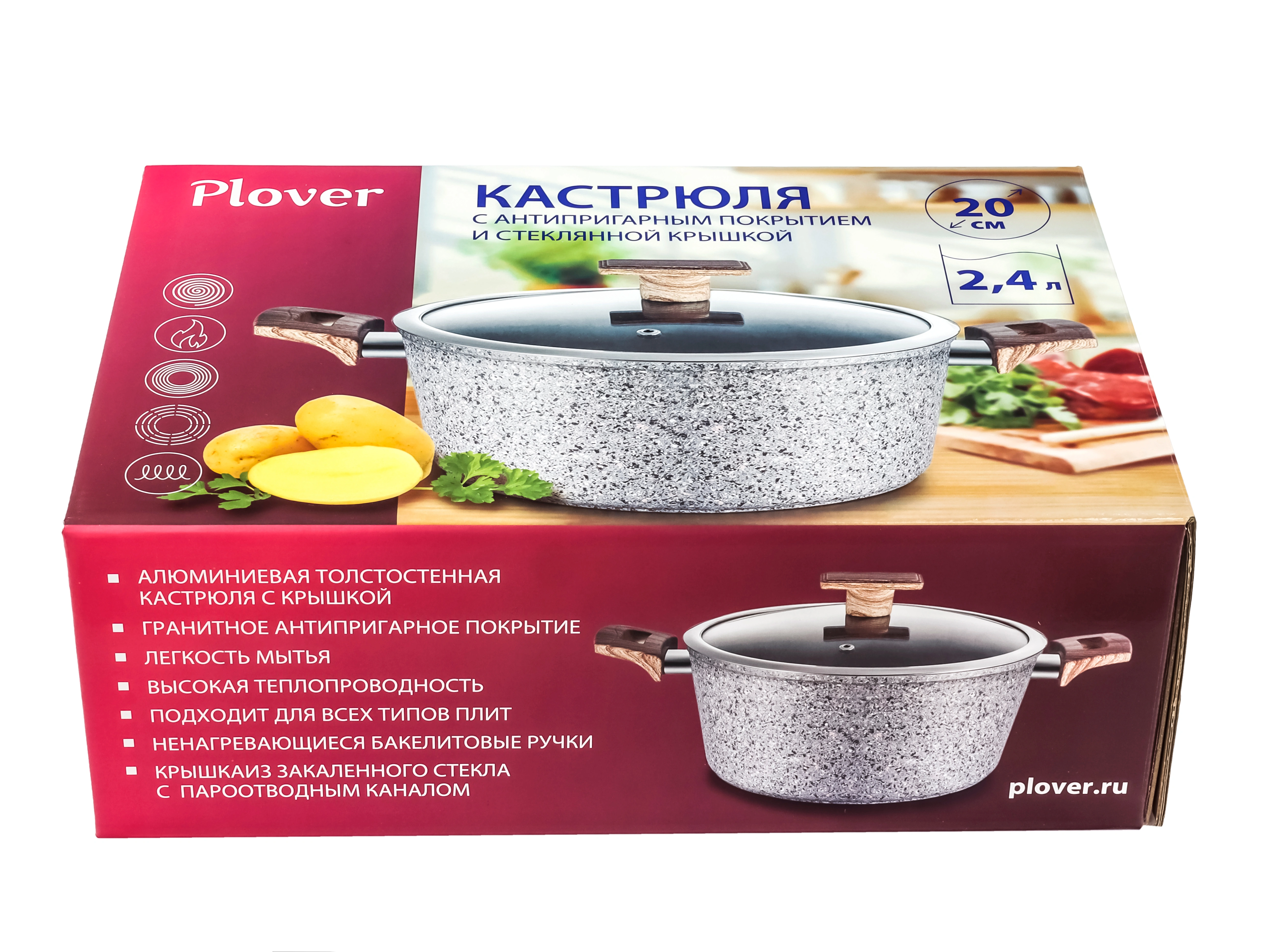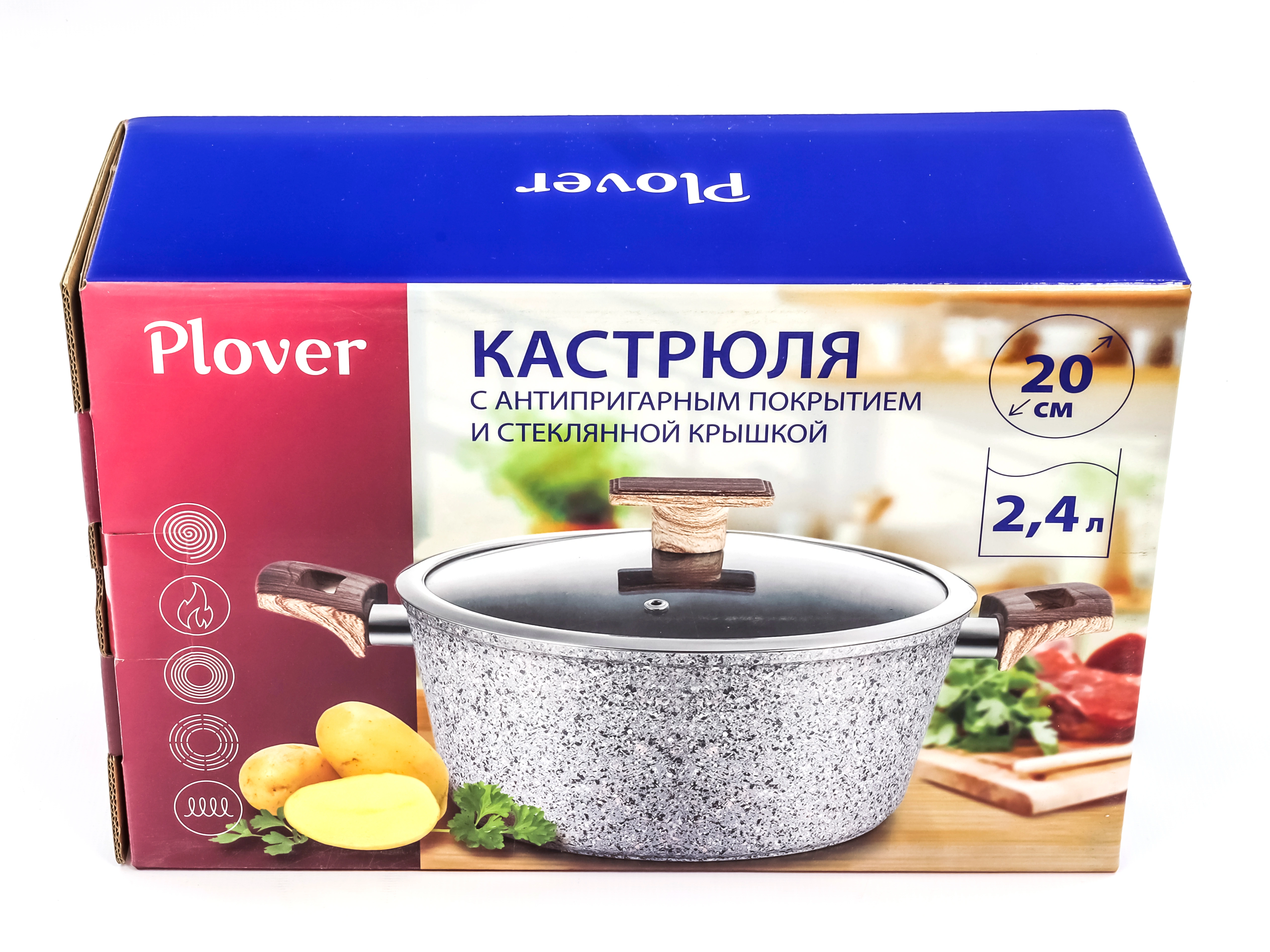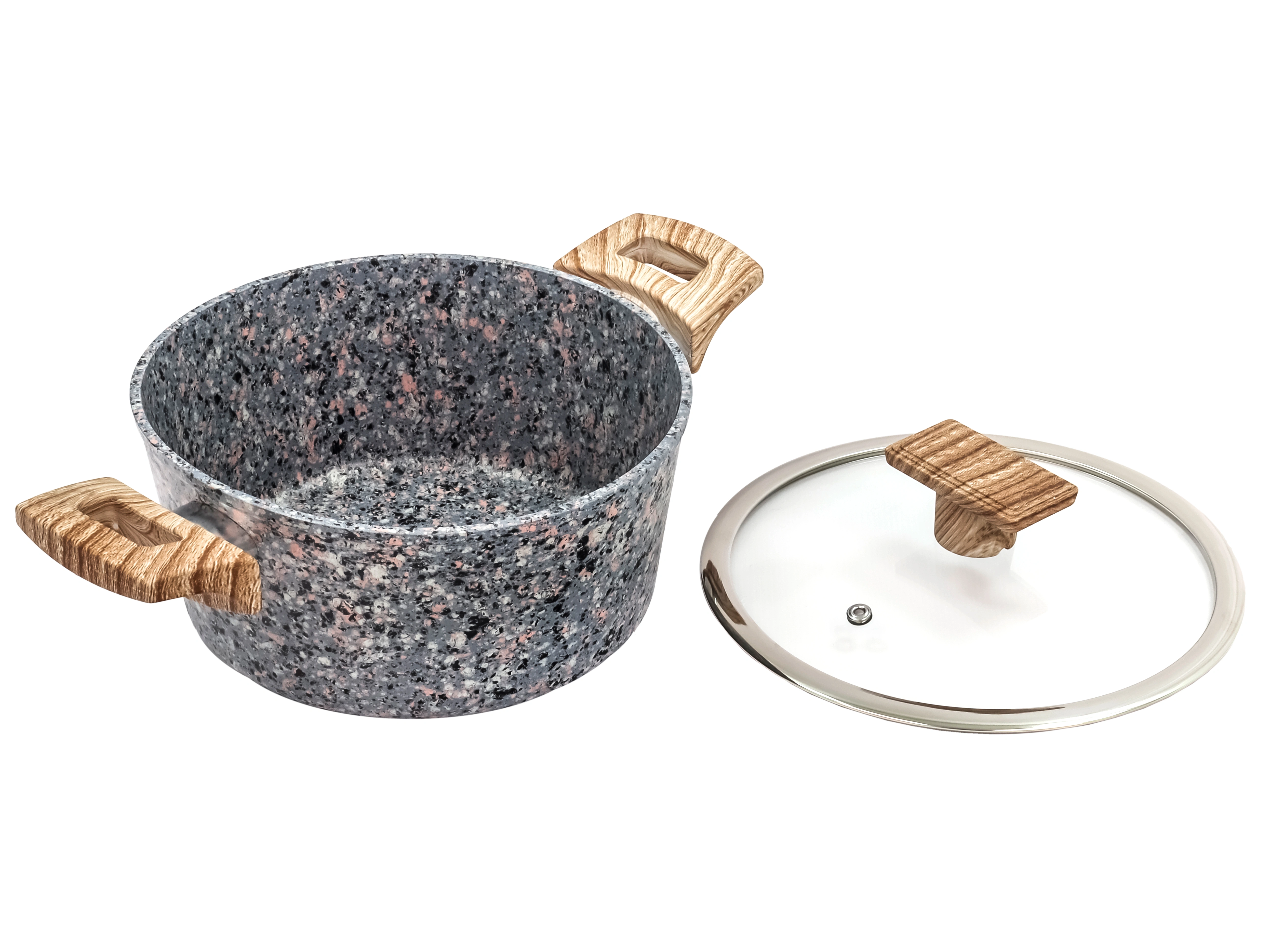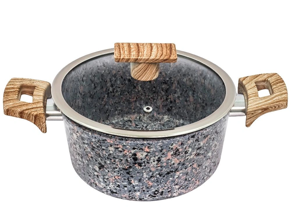 Кастрюля 2.4 л с антипригарным покрытием со стеклянной крышкой 20 см, Granit, PLOVER