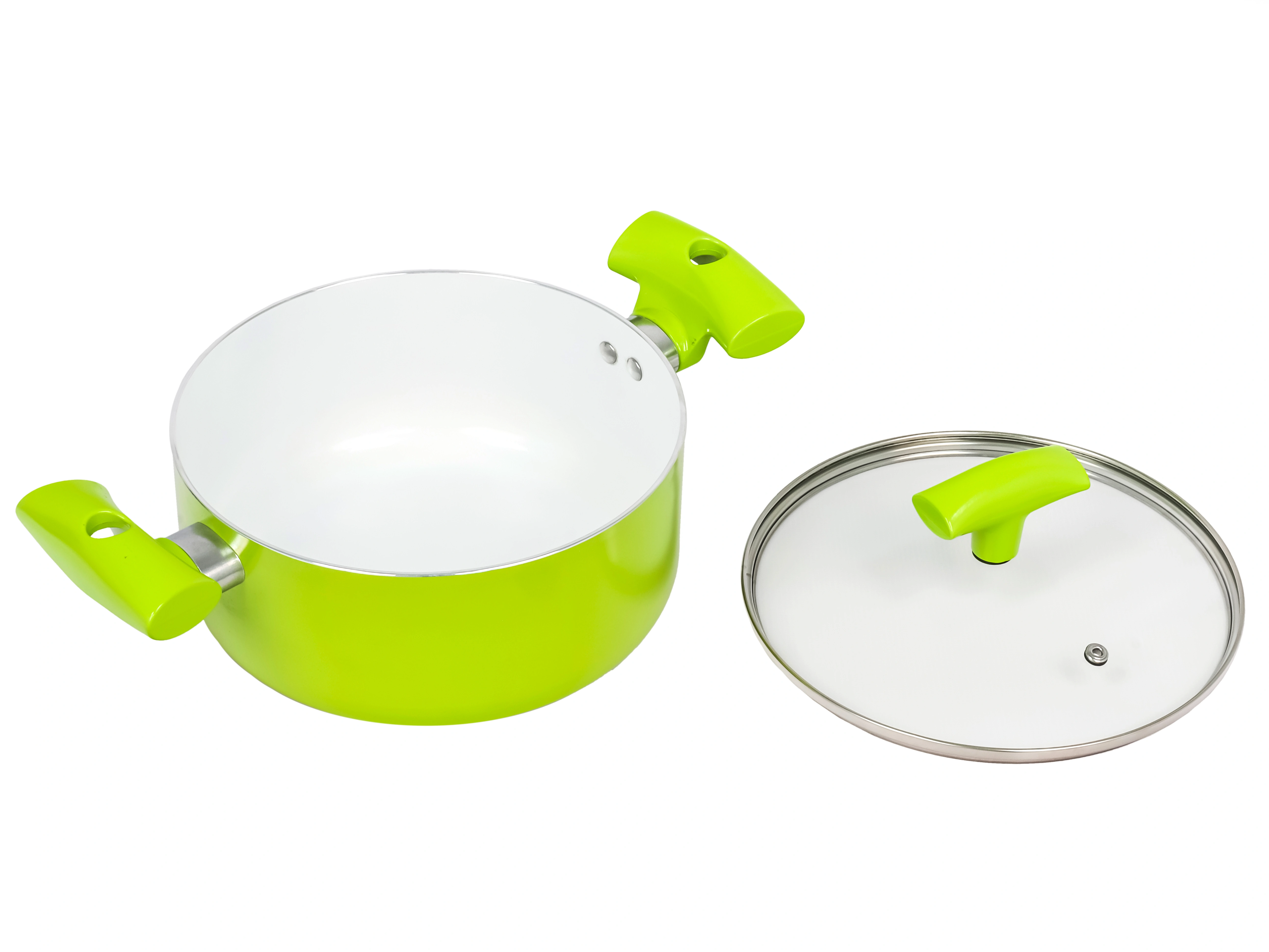 Кастрюля 2.4 л с антипригарным покрытием со стеклянной крышкой 20 см, Lime, PLOVER
