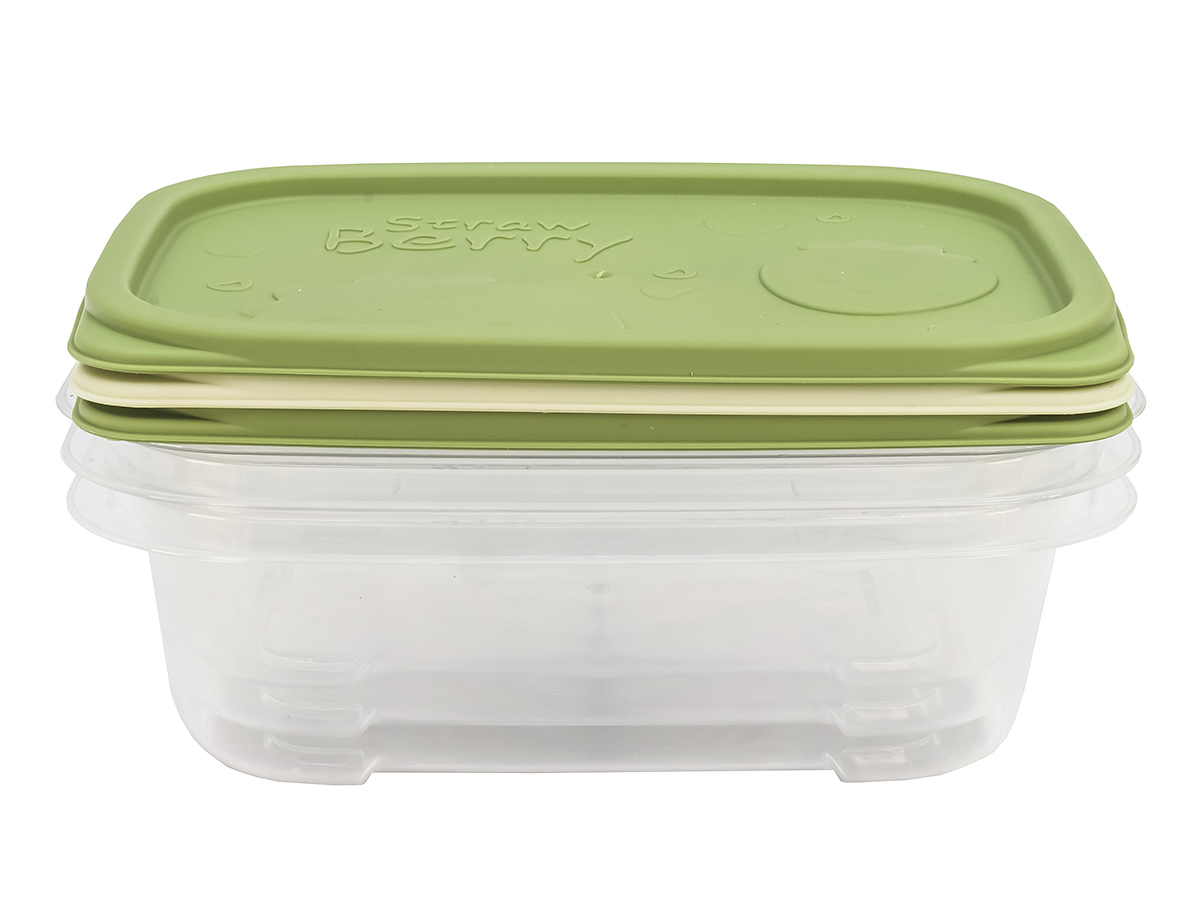 Набор включает в себя 3 герметичных пластиковых емкости с крышкой, объемами по 1 л.