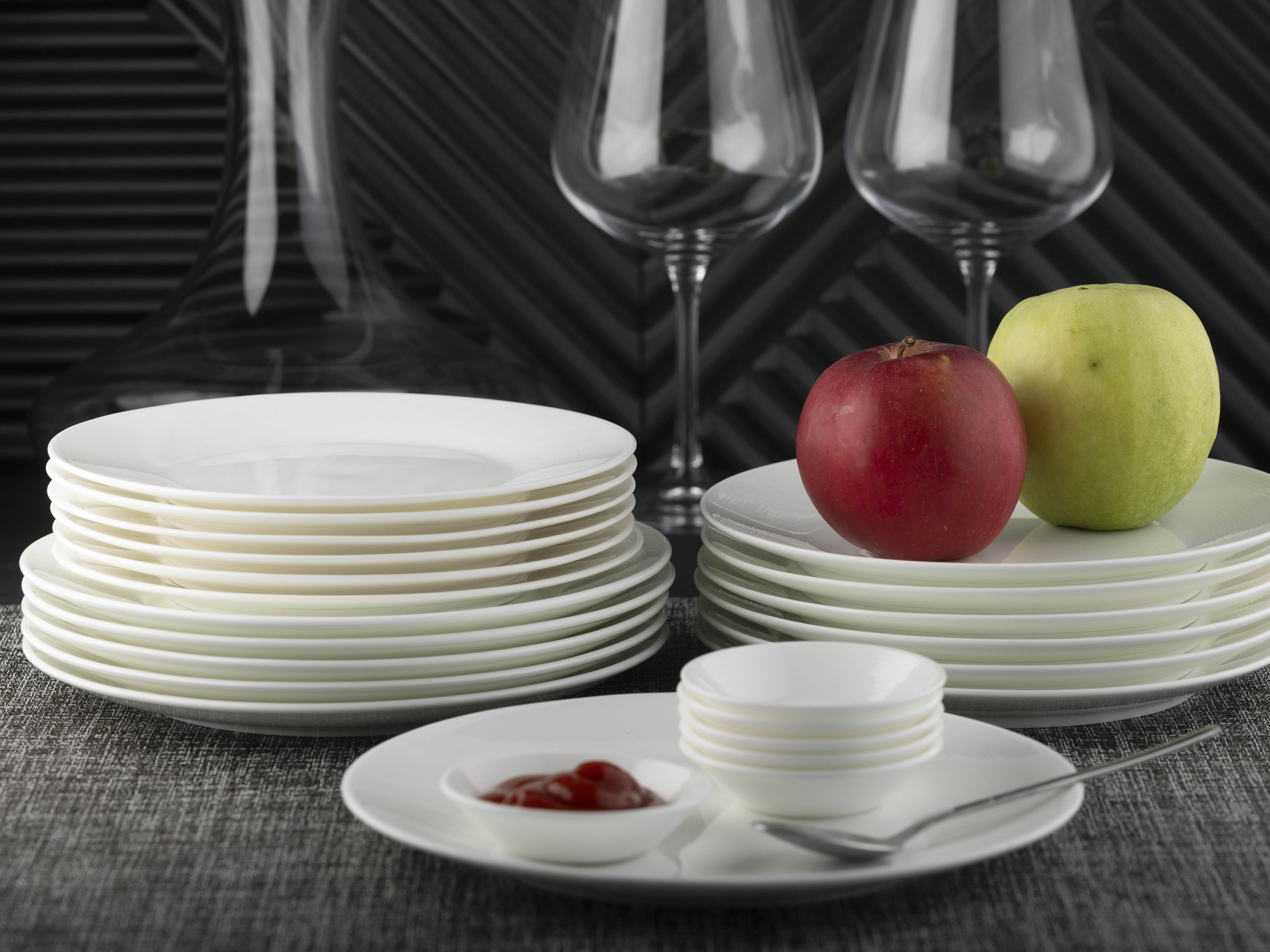 Обеденные тарелки обладают высокой устойчивостью к износу, сколам и высоким температурам, что делает их более долговечными в использовании. Данный материал является идеальным выбором для тех, что ценит надежность и функциональность, сочетая в себе экологичность и безопасность. Набор подходит для праздничной сервировки и ежедневного использования.
