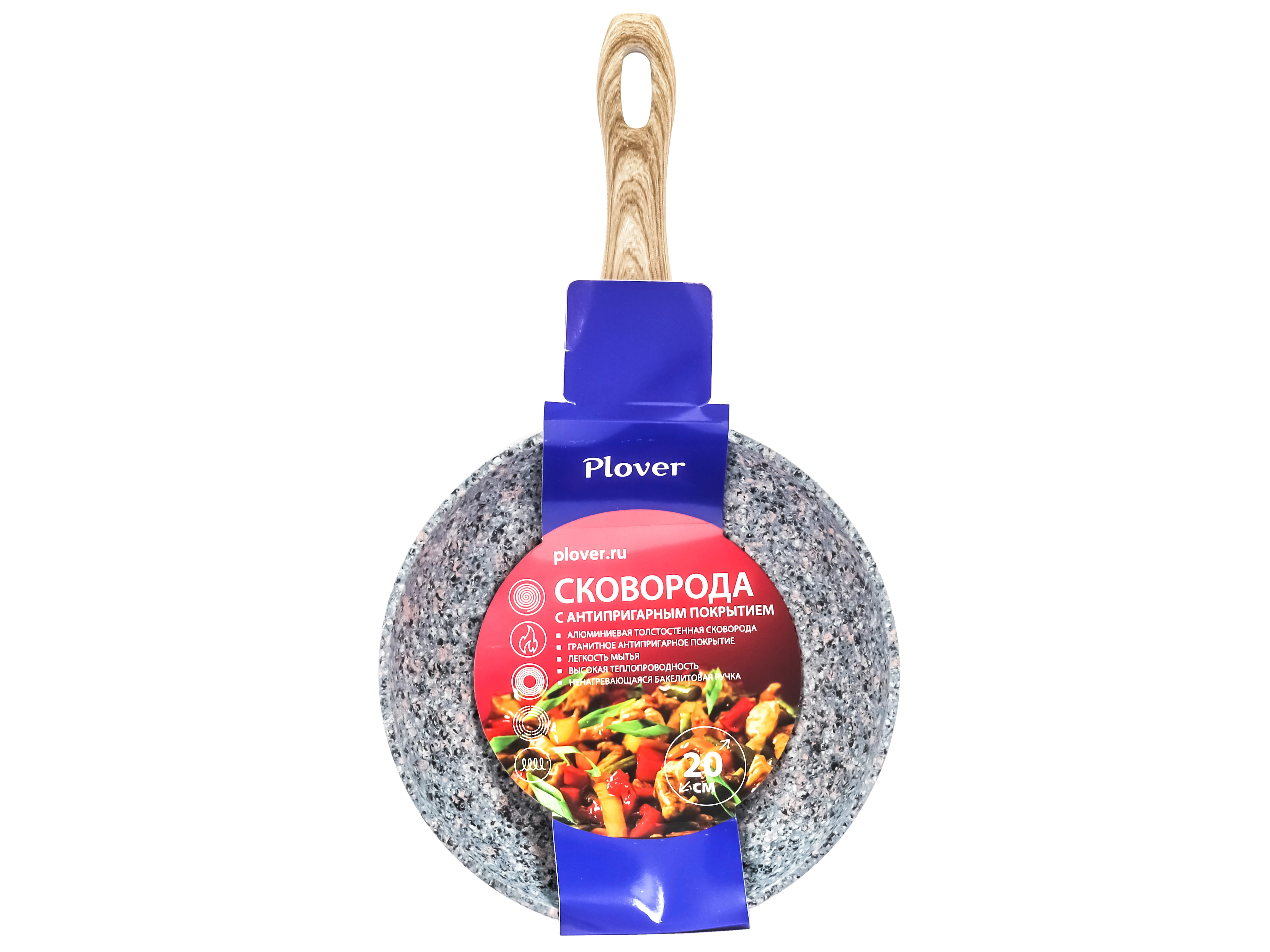 Сковорода с антипригарным покрытием с фиксированной ручкой, 20 см, Granit, PLOVER