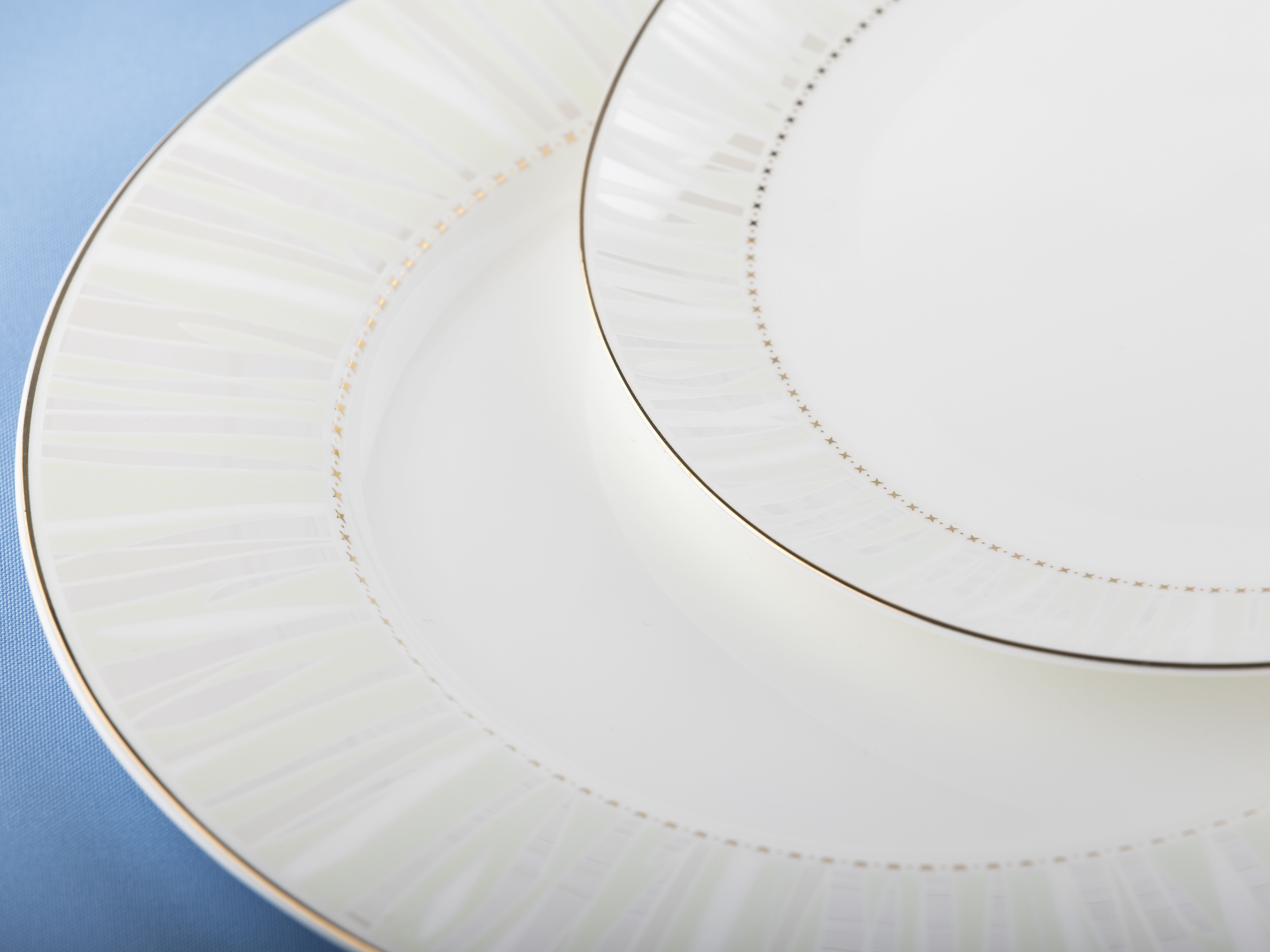 Утонченный рисунок с нежными перламутровыми переливами, напоминающий узор природного минерала, в светлом исполнении будет нежно смотреться на Вашем столе и подчеркнёт изысканный вкус хозяйки.