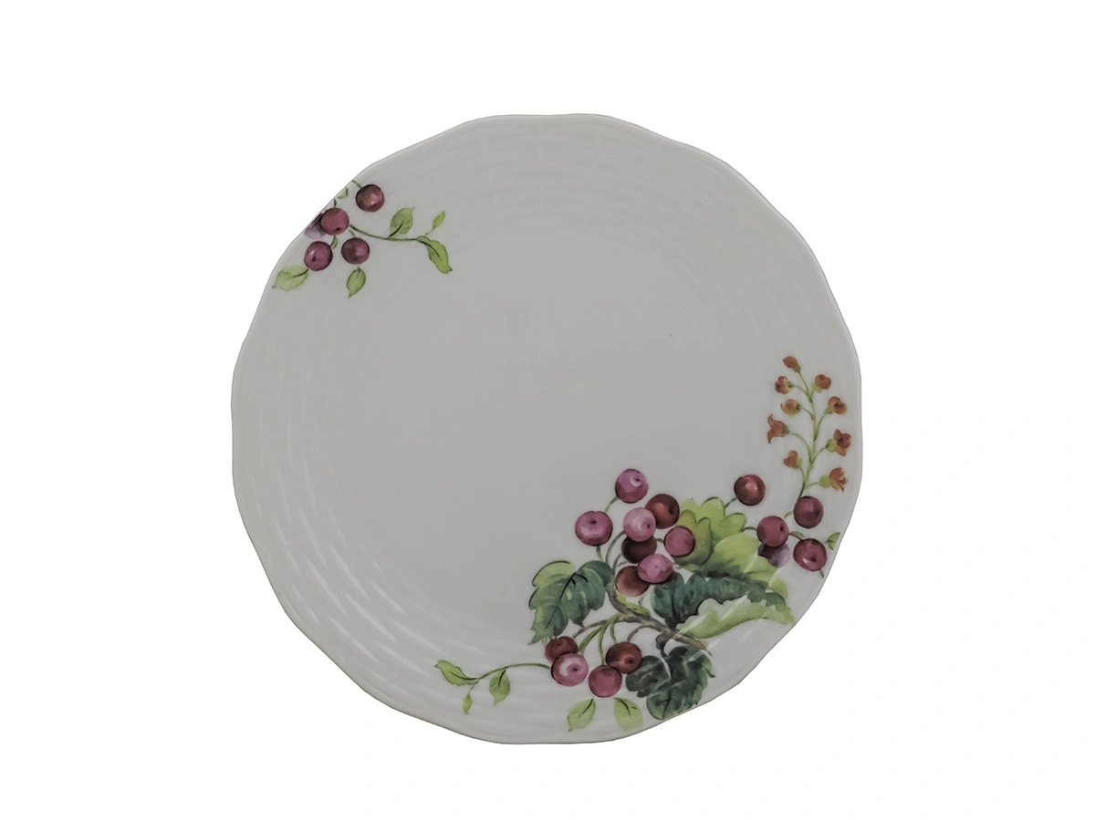 Белый цвет будет эффектно смотреться на Вашем столе, а утонченный рисунок спелых ягод придаст особой изюминки столу и создаст особую атмосферу. Эта элегантная тарелка станет прекрасным дополнением к вашему интерьеру и подчеркнёт вкус хозяйки.
