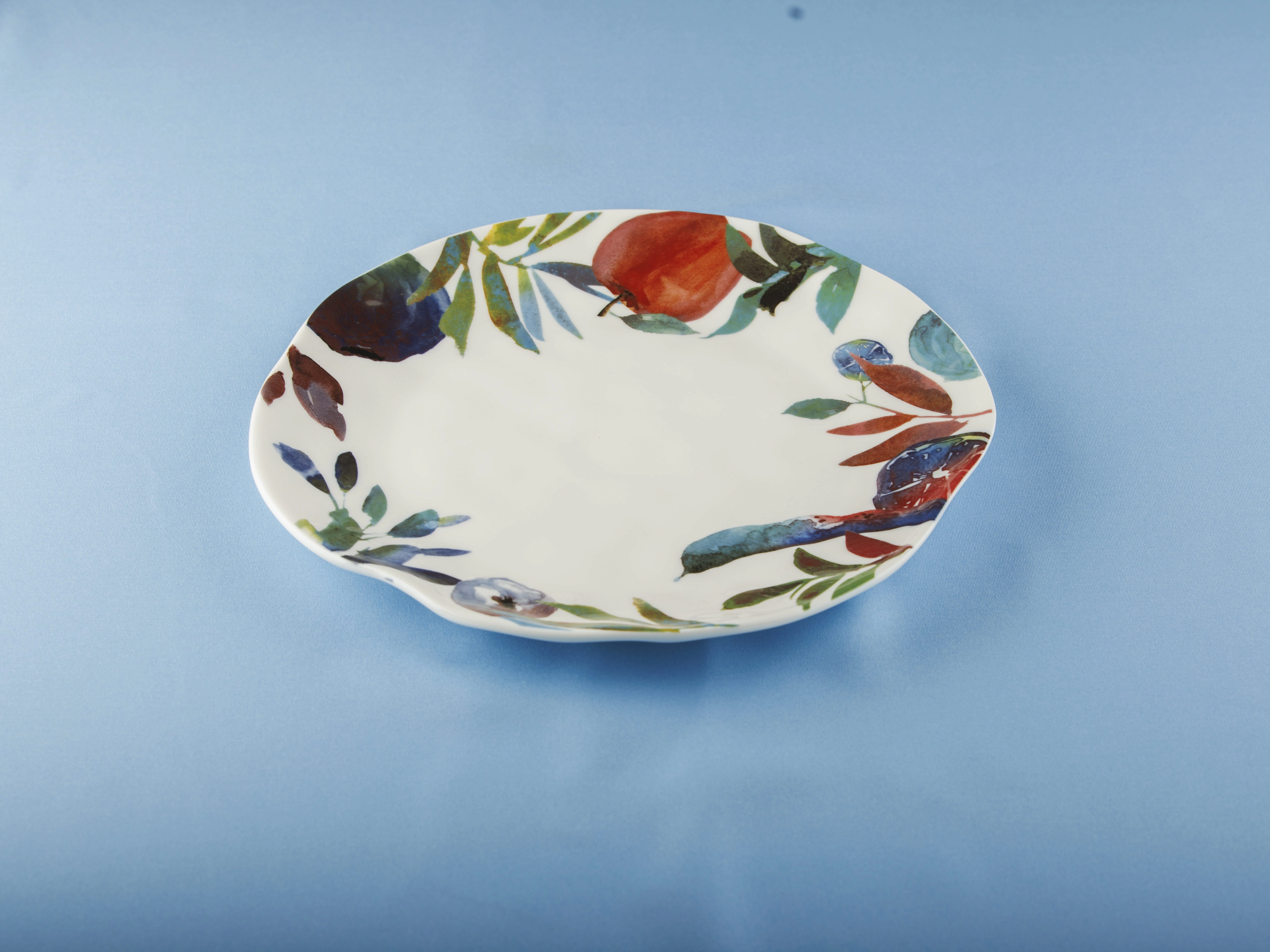 Нестандартная форма и спелые фрукты в ярком акварельном исполнении будут эффектно смотреться на Вашем столе и подчеркнут изысканный вкус хозяйки.