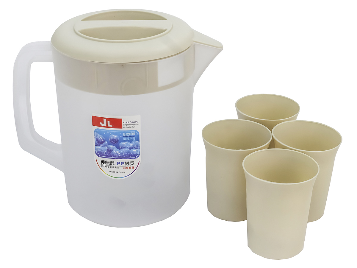 Пластиковый набор: кувшин и 4 стакана – идеальный выбор для вашей кухни, дачи или для поездок на природу! В него входит пластиковый кувшин объёмом 2.5 литра и четыре стакана по 300 мл.