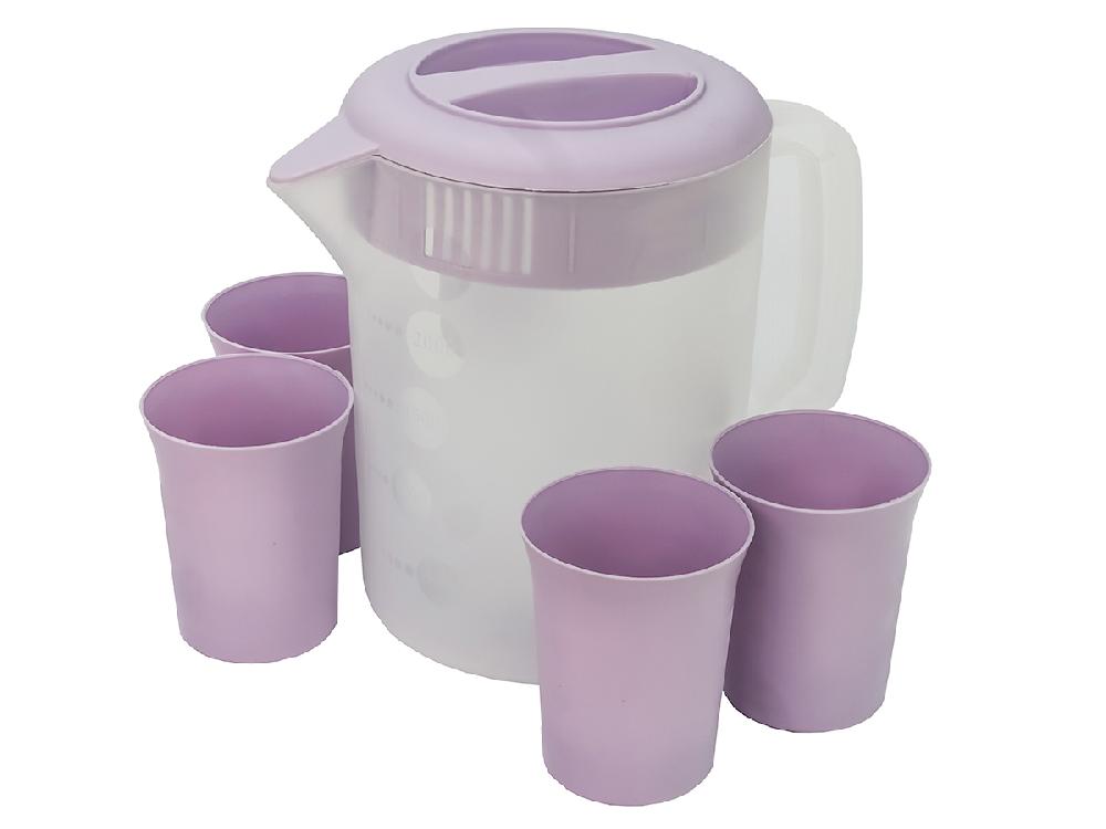 Пластиковый набор: кувшин и 4 стакана – идеальный выбор для вашей кухни, дачи или для поездок на природу! В него входит пластиковый кувшин объёмом 2.5 литра и четыре стакана по 300 мл.