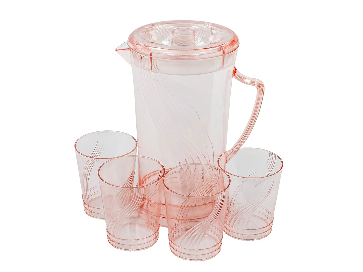 Пластиковый набор: кувшин и 4 стакана – идеальный выбор для вашей кухни, дачи или для поездок на природу! В него входит пластиковый кувшин объёмом 2 литра и четыре стакана по 300 мл.