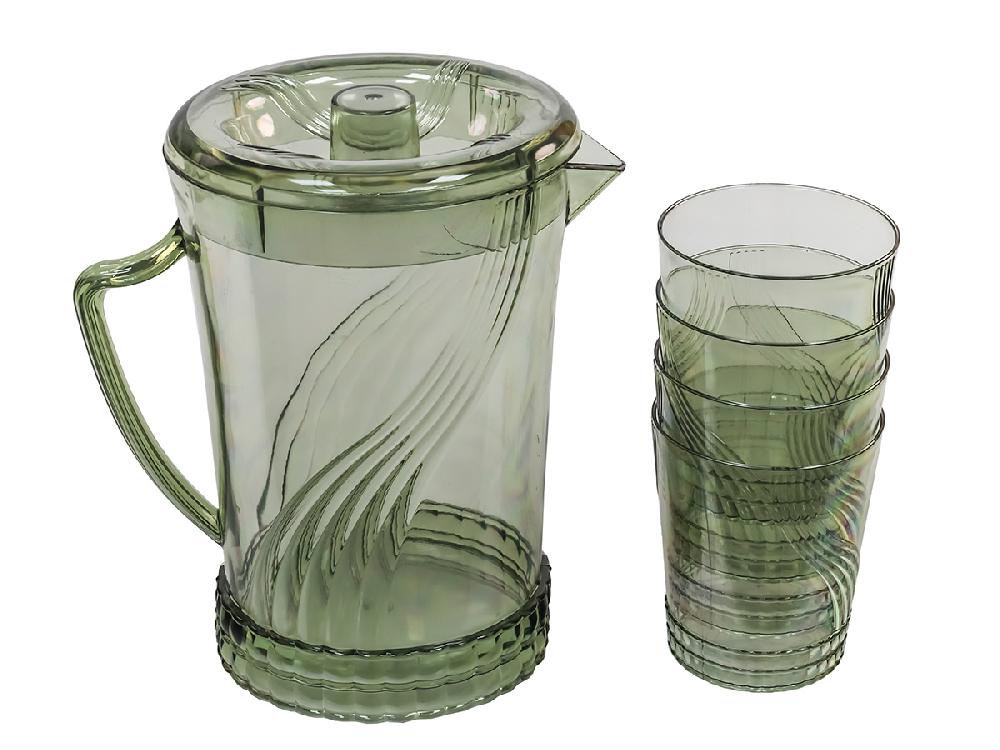 Кувшин с крышкой 1.5 л со стаканами 4 шт по 300 мл, пластик, зеленый
