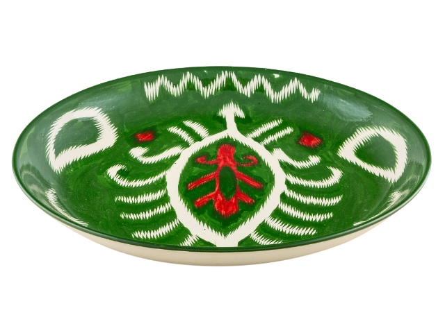 Ляган — узбекская тарелка для плова или другого главного блюда. Раньше ляганы ручной работы с уникальной росписью подавали на стол только по праздникам, но теперь эта красивейшая посуда доступна нам каждый день. Глазурованные ляганы из Риштана, исторического центра керамического промысла, ценятся особо. Их тонкие, радующие глаз орнаменты нарисованы натуральными красителями, которые веками использовались в Узбекистане. Риштанская керамика превратит обычный домашний обед в яркое восточное застолье. Внимание: посуда из красной глины не предназначена для использования в микроволновой печи и посудомоечной машине. Так как изделия изготовлены и раскрашены вручную, орнаменты и цвета могут иметь отличия от образцов на снимках — каждый экземпляр уникален.