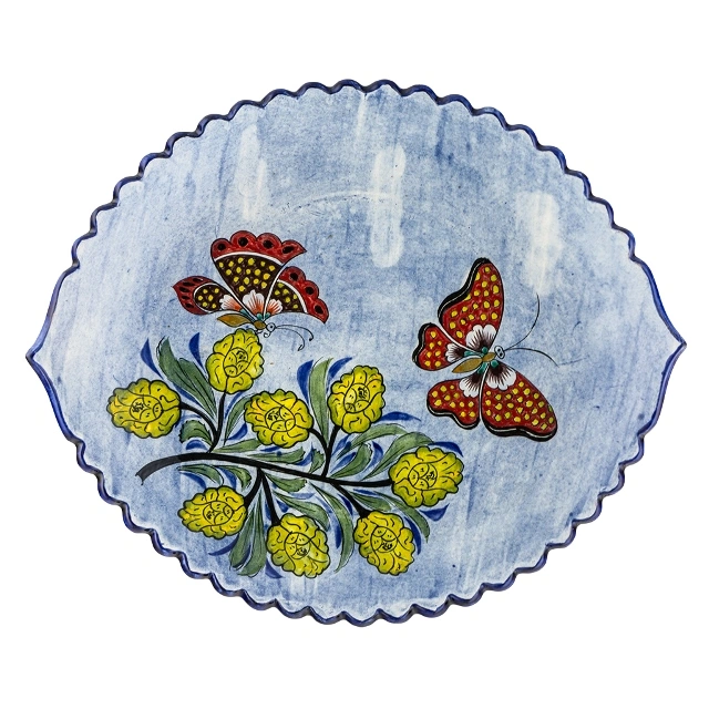 Блюдо Ляган "Риштанская керамика", Бабочка, Узбекистан, диаметр 41