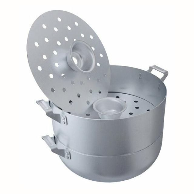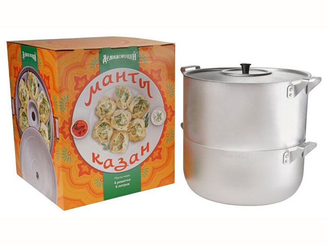 Мантоварка представляет собой многоярусную кастрюлю для приготовления еды на пару: в нижней секции кипит вода, на сетках готовятся манты или другие блюда из теста с начинкой. Такая пароварка подойдет и сторонникам правильного питания, ведь блюда в ней готовятся без масла и сохраняют максимум полезных веществ. Мантоварки укомплектованы разным количеством съемных дисков и сеток и имеют различный объем: чем больше ярусов, тем больше мант можно готовить одновременно. Алюминиевая мантоварка используется на газовых и электрических плитах.