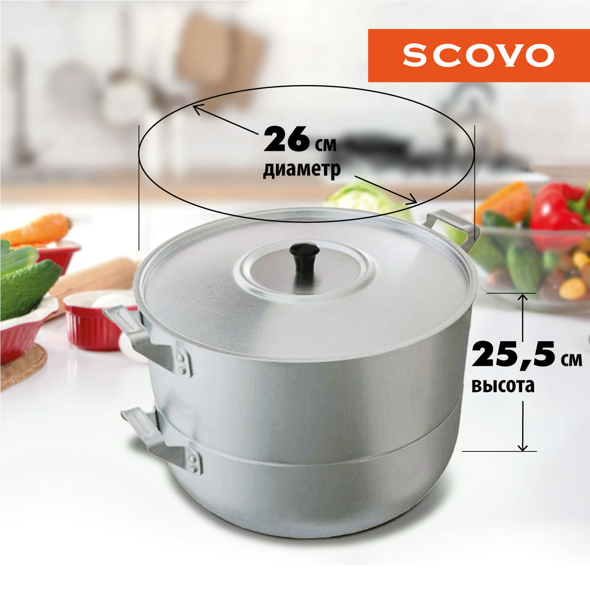 Четырехуровневая мантоварка из матового алюминия, продукция российского производителя SCOVO. Объем 6 литров, диаметр 26 см, высота 25,5 см, расстояние между ярусами 3 см, диаметр отверстий 1 см, вес 2,38 кг. Артикул товара МТ-040. Купите в Москве мантоварку, SCOVO, МШ-040, 4-уровневую, 6 л, самостоятельно или обратитесь за помощью к консультанту нашего магазина.
