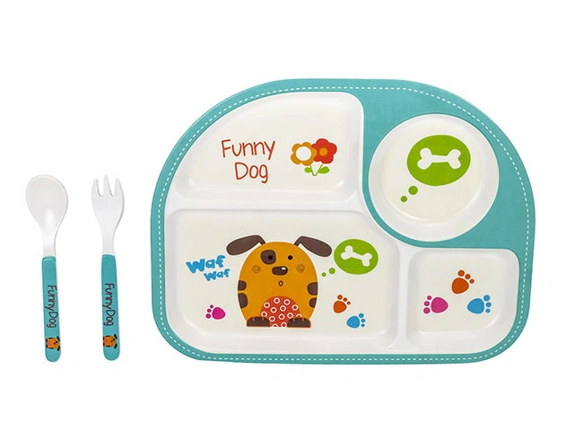 Легкая, прочная, яркая гипоаллергенная посуда из натурального материала. Бамбуковое волокно получают путем измельчения стеблей и листьев, посуду из него делают методом прессования. Бамбук выращивается без использования химических удобрений, на производстве сырье обрабатывается паром. Картинки – мотивы с собачкой – нанесены пищевыми красками, безопасными для здоровья ребенка. В отличие от стеклянной или керамической посуды, бамбуковая не разобьется и не расколется при падении. Бамбуковая посуда выдерживает частое мытье, в том числе в посудомоечной машине, но ее не рекомендуется на долгое время замачивать в воде и использовать в микроволновой печи.