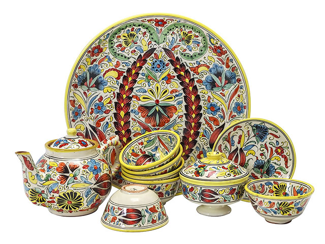 Набор чайный "Риштанская керамика", Турецкий стиль, желтый, 10 предметов