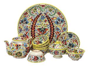 Посудой из коллекции «Риштан» можно украсить любой дом, наполнить его чарующими нотками Востока. Считается, что неповторимые изысканные узоры “риштана” служат оберегом, становятся хранителями семейного очага.