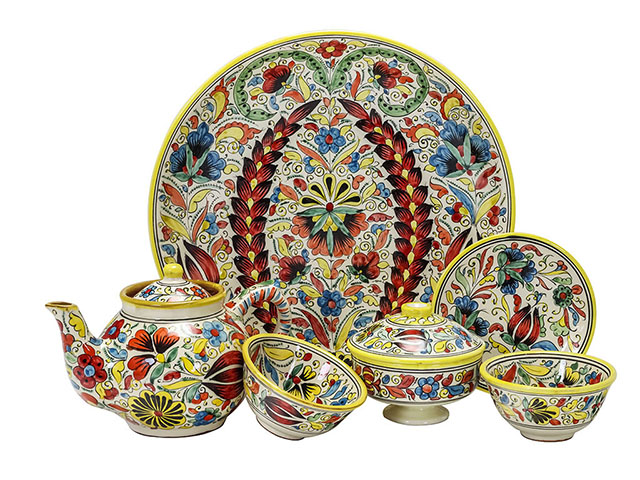 Так как эта посуда изготовлена и раскрашена вручную, орнаменты и цвета изделий могут иметь отличия от образцов на снимках - каждый экземпляр уникален.
