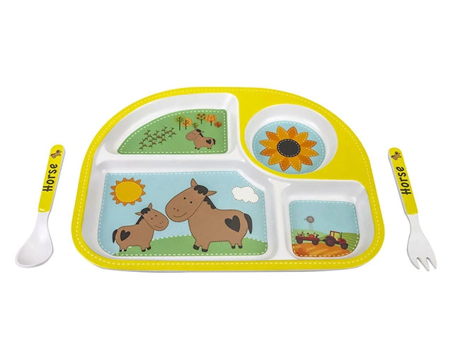 Детская посуда из бамбукового волокна, в комплекте тарелка с разделителями, ложка и вилка, рекомендовано для детей с 6 месяцев. Производитель посуды российская марка PLOVER, страна изготовления – Китай. Артикул товара PL029. Купить набор детской бамбуковой посуды для кормления "Пони", 3 предмета, в Москве вы можете на нашем сайте в разделе “Посуда”.