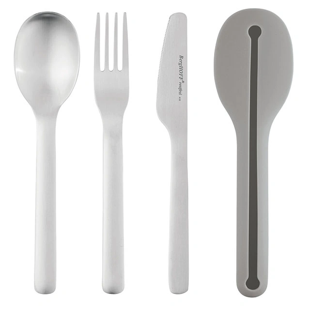 -1шт набор столовых приборов в силиконовом чехле (вилка, ложка, нож 18см);