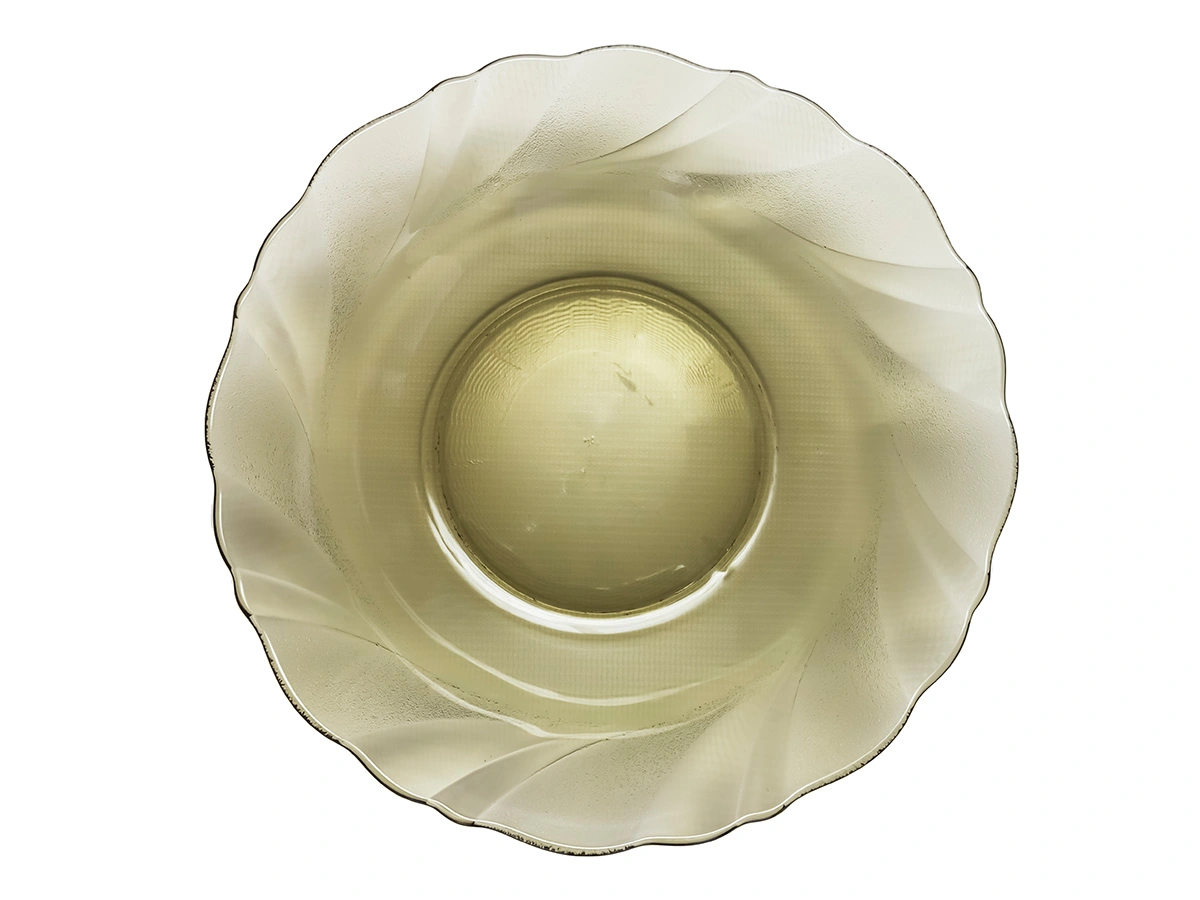 Тарелка проста в уходе, её можно мыть вручную или в посудомоечной машине. Однако следует избегать использования абразивных моющих средств и жёстких губок, чтобы сохранить блеск и прозрачность стекла.