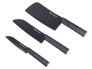 В набор входят три ножа: нож для мяса длиной 18 см, поварской нож 18 см и нож для фруктов 12,6 см. Общий вес набора 0,5 кг. Артикул товара PL011. Материал лезвий – японская сталь с покрытием от прилипания продуктов. Рукояти сделаны из стойкого пластика, режущая часть и ручка соединены между собой суперпрочными заклепками. Купите в Москве набор ножей Plover в один клик в онлайн-магазине или с помощью оператора.