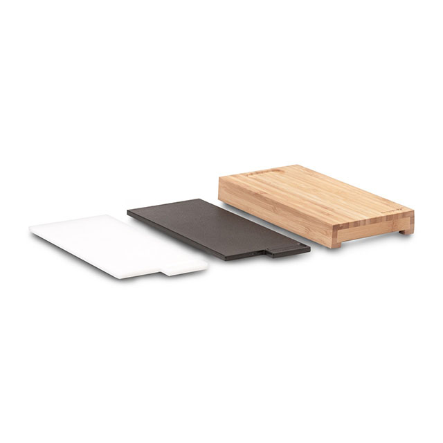 Универсальный набор ножей для всех кулинарных задач. Нож для очистки - маленький и легкий, с прямой режущей кромкой. Это по-настоящему универсальный нож, идеальный для очистки и других мелких работ. Часто используется для очистки фруктов и овощей, которые можно держать в руках. Если другие ножи используются на кухне для приготовления ингредиентов, ножи для стейка пригодятся уже за столом, когда стейк или другие мясные блюда уже готовы. Универсальный нож идеален для всех нарезочных работ, требующих точности. Нож Сантоку - нож в азиатском стиле с прямой кромкой лезвия. Это универсальный нож для различных кухонных работ. Широкое лезвие подходит и для некоторых специфических задач, таких как раздавливание чеснока и сбор нарезанных ингредиентов на лезвие. Нож для хлеба - большой нож с зубчатым лезвием. Используется для нарезания продуктов, твердых снаружи и мягких внутри, таких как хлеб и другая выпечка. Также может использоваться для нарезания томатов. Поварской нож - самый используемый на кухне. Загнутое кверху лезвие позволяет раскачивать нож во время нарезки на разделочной доске. Благодаря широкому и тяжелому лезвию также подходит для легких разрубочных работ. Острый нож безопасней, поскольку не нужно применять силу для нарезки. Мусат - это необходимый инструмент, чтобы сохранять ваши ножи острыми. Ножницы для разделки птицы специально разработаны, чтобы прорезать кости, куриную кожу и другие жесткие материалы. Они могут быть использованы как обычные кухонные ножницы, подходящие для целого круга более трудных кухонных нарезочных работ. С дополнительными досками для нарезки, вставляющимися в блок. Колода удобно сохраняет все ножи безопасным образом. Нескользящая платформа обеспечивает дополнительную устойчивость.