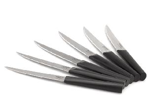 Комплект из 6 специализированных ножей для стейка. Длина ножа 24 см, ширина лезвия 2 см, вес 0,36 кг. Режущая часть изготовлена из нержавеющей стали. Ручки безопасной конструкции имеют “сатиновую” обработку. Ножи произведены бельгийским брендом BergHOFF, артикул в магазине 1301090. Купить в Москве набор ножей для стейка BergHOFF Eclipse, 6 приборов, вы можете в разделе "Кухонные ножи".