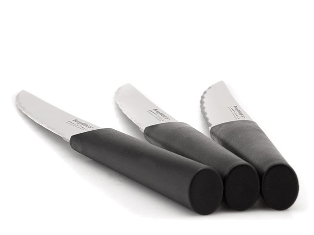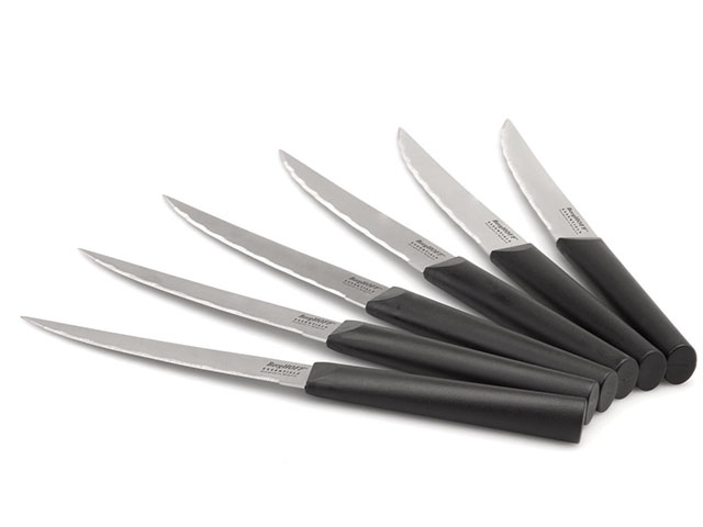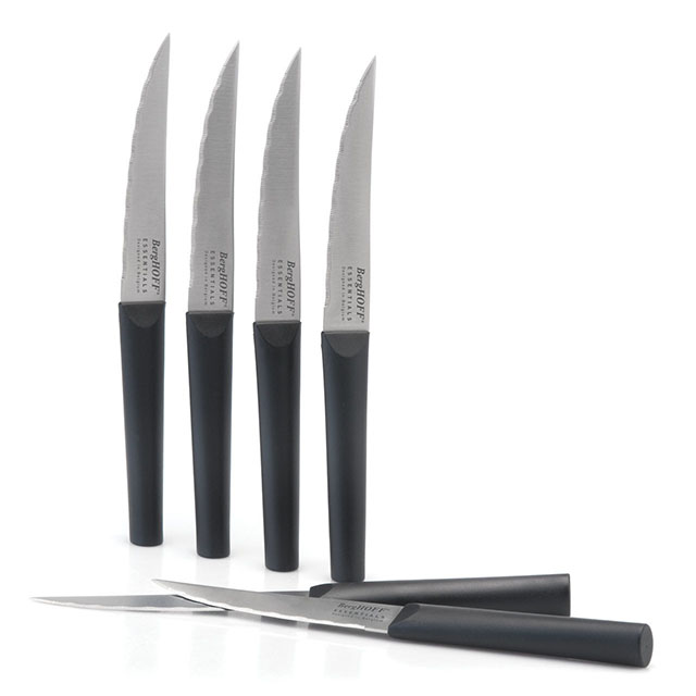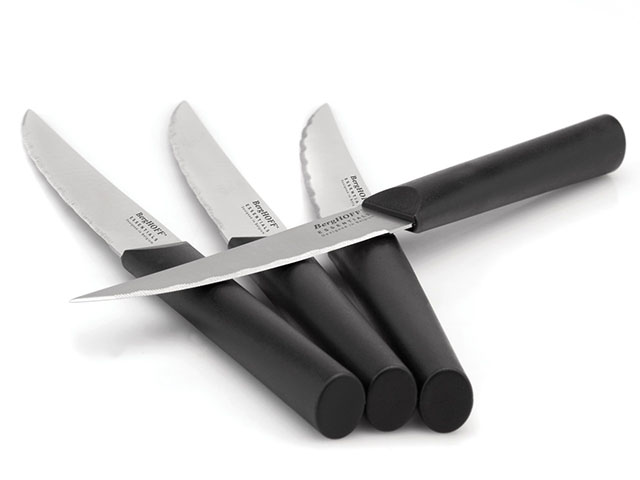 Ножи с волнистой кромкой лезвия в большей степени предназначены для нарезки большого куска мяса или стейка с прожаркой выше среднего: зубчики быстрее справляются со сложной задачей. Инвентарь BergHOFF, как всегда, отличается европейским качеством, продуманной конструкцией и привлекательным дизайном. Набор ножей для стейка BergHOFF — отличный подарок любому кулинару, который любит работать с мясом, мангалом и грилем или готовить стейки в домашних условиях.